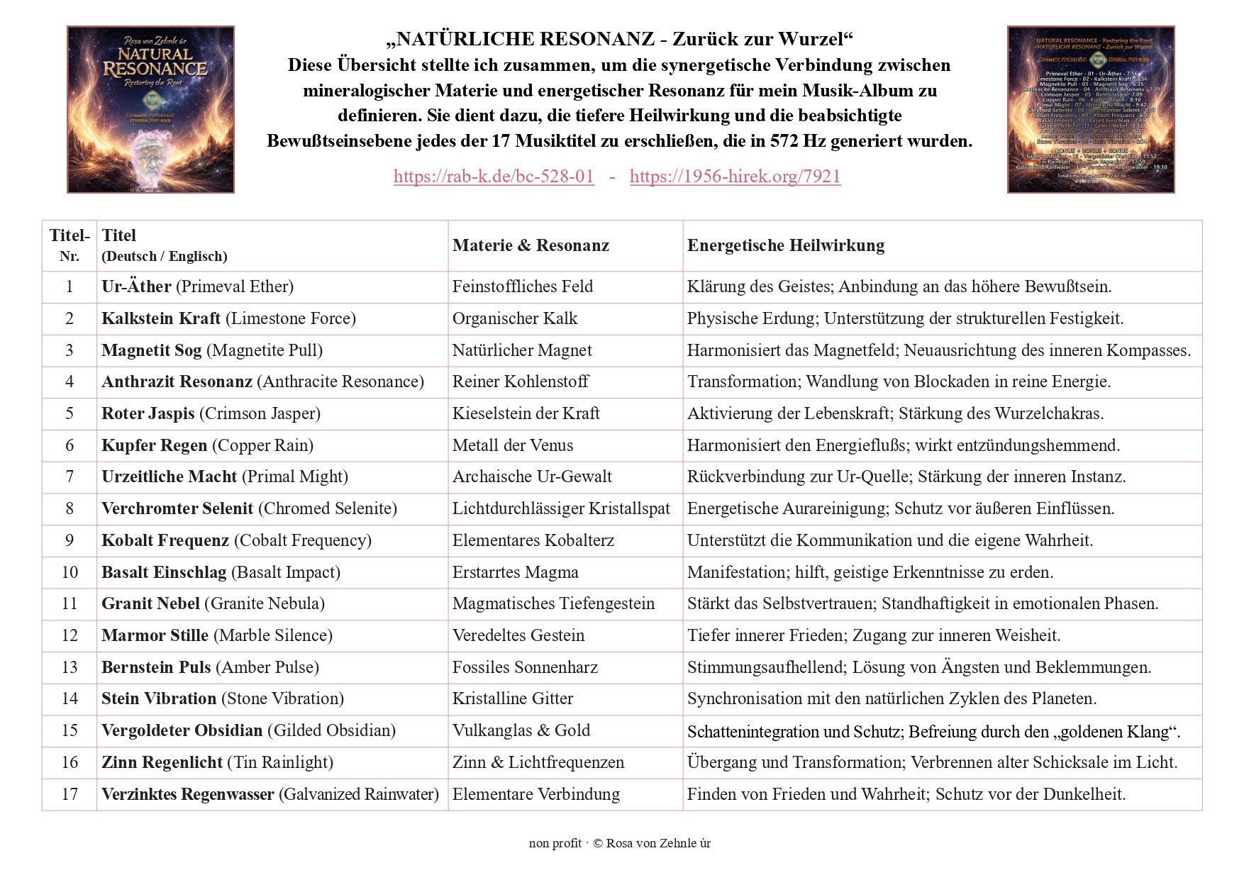 Wenn die Härte des Gesteins auf die heilende 527 Hz Frequenz des Lebens trifft, entsteht eine Resonanz, die weit über das bloße Hören hinausgeht. Dieses Album ist kein gewöhnliches Musikalbum, sondern ein naturrechtliches Manifest aus Klang, Materie, Sinnlichkeit und mehr …